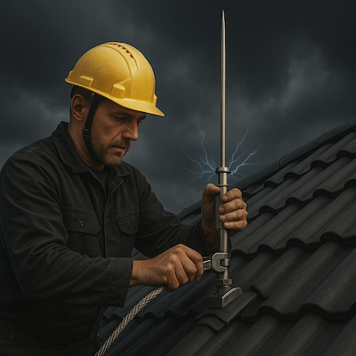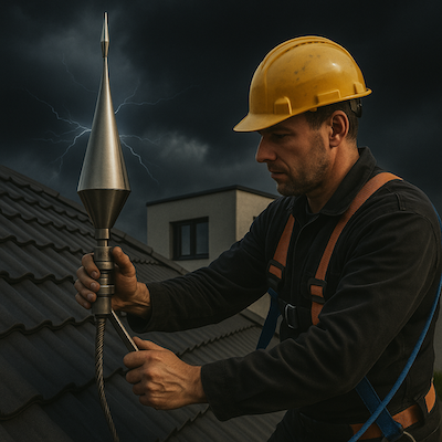 Profesionálna montáž pasívnych bleskozvodov na rodinné domy aj priemyselné objekty.